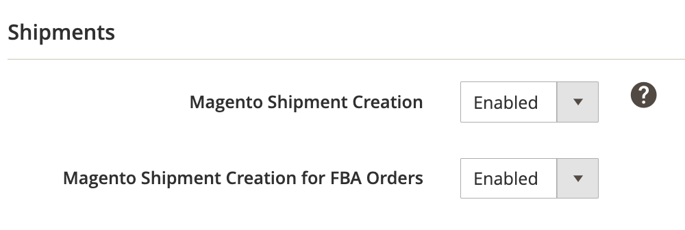 - Vytvoření zásilky Magento pro objednávky FBA – povolte tuto možnost, aby se automaticky vytvořila zásilka pro objednávku Magento, když je odeslána související objednávka Amazon FBA.