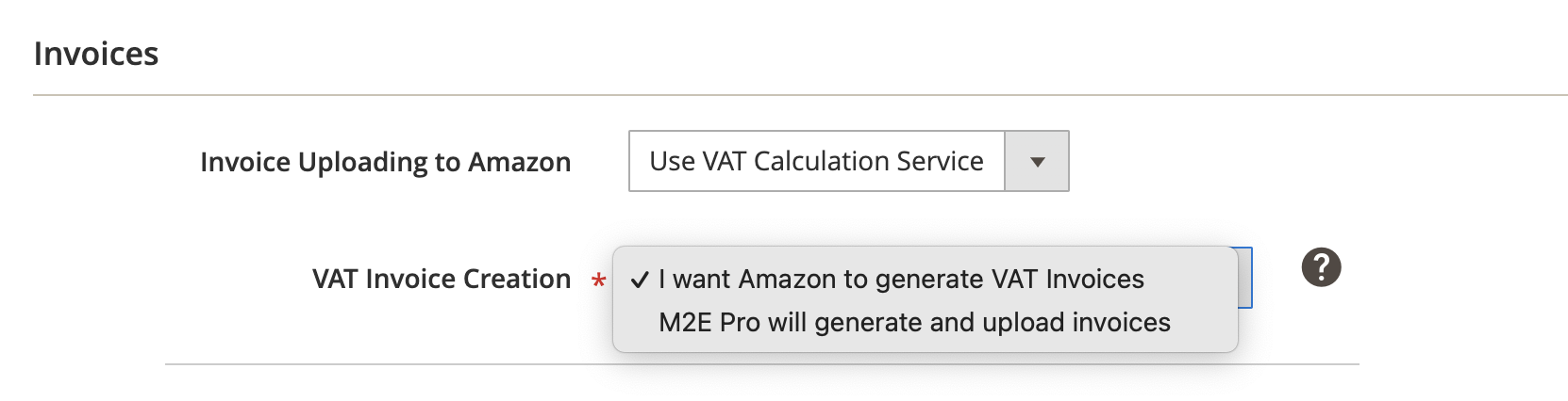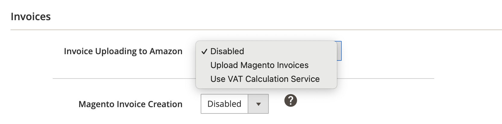 ℹ️ Faktury s DPH a faktury Magento spolu nesouvisí. Pokud máte povolené obě funkce Použít službu výpočtu DPH a Vytváření faktur Magento, faktury s DPH se automaticky nahrají na Amazon. Mezitím budou standardní faktury Magento uchovávány ve vašem Magentu.
