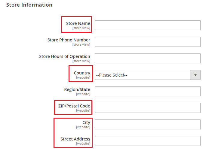 Důležité! Než vyberete možnost Vytvoření faktury s DPH, přejděte nejprve do části Obchody > Konfigurace > Obecné > Obecné > Informace o obchodě. Ujistěte se, že jste vyplnili následující pole: