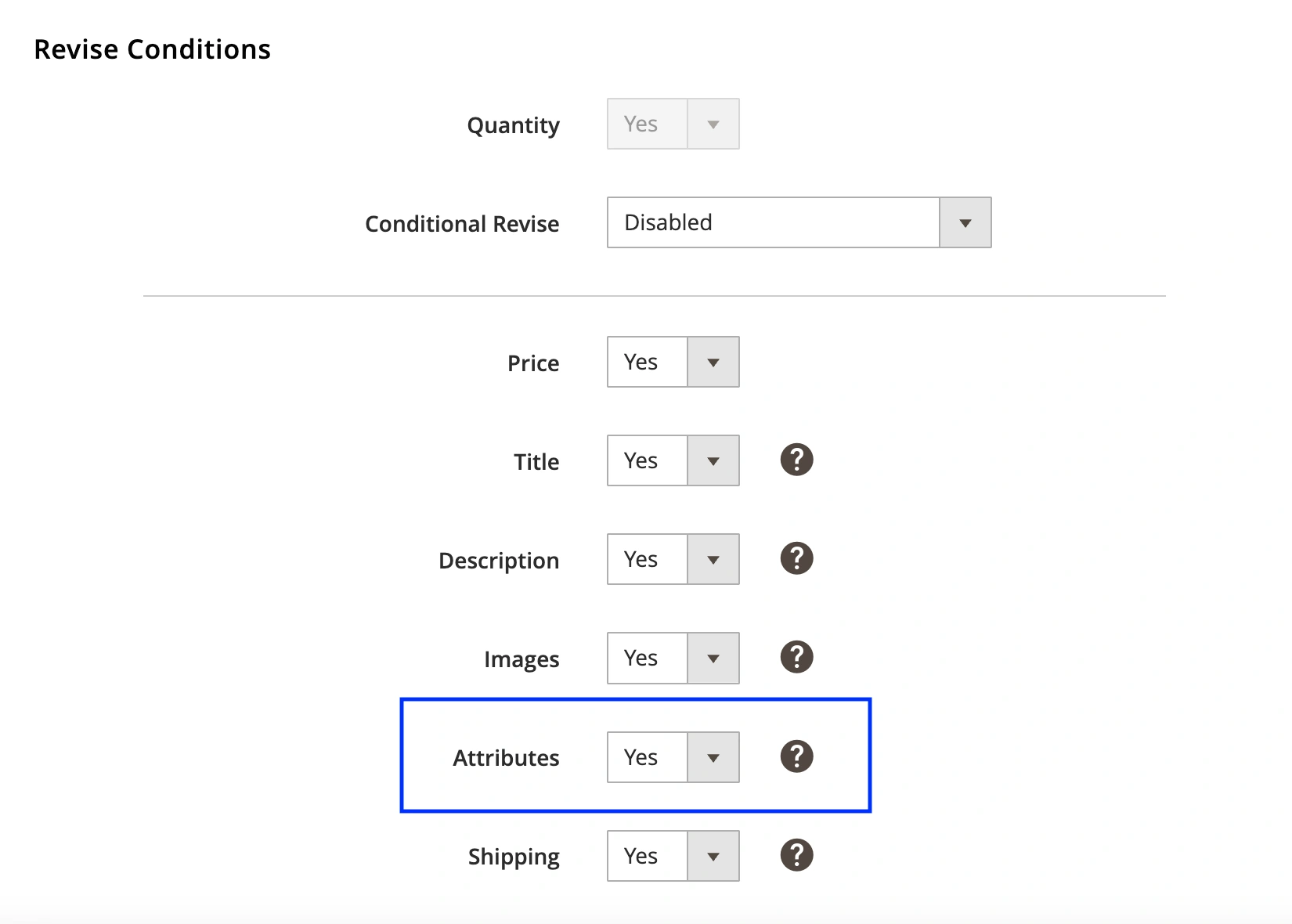 Chcete-li zajistit, aby M2E odeslal změny do Temu, povolte možnost Atributy v části Revize Pravidel synchronizace: