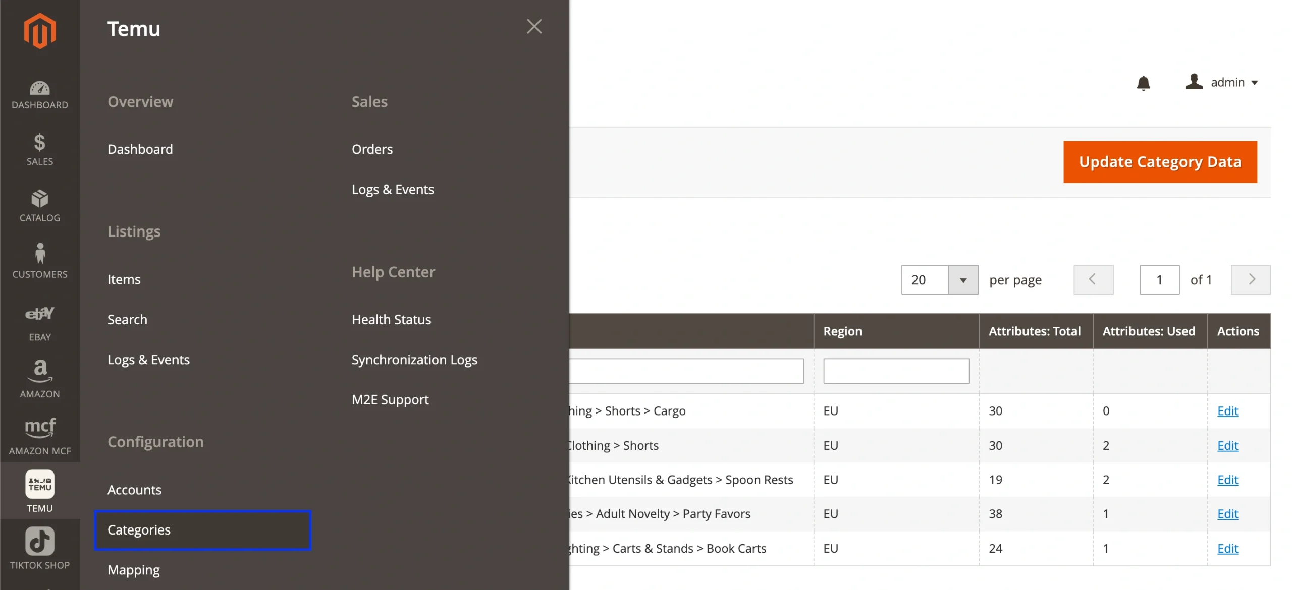 V aplikaci M2E Temu Connect můžete přiřadit zemi původu pomocí atributů kategorie. Postupujte podle následujících kroků: