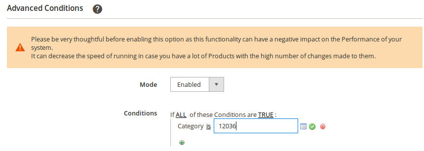Pokud chcete, aby aplikace M2E Pro na základě vašich podmínek seznamu automaticky vypisovala nové produkty přidané do nabídky z vašeho inventáře Magento na eBay, zvolte možnost Enabled (Povoleno).