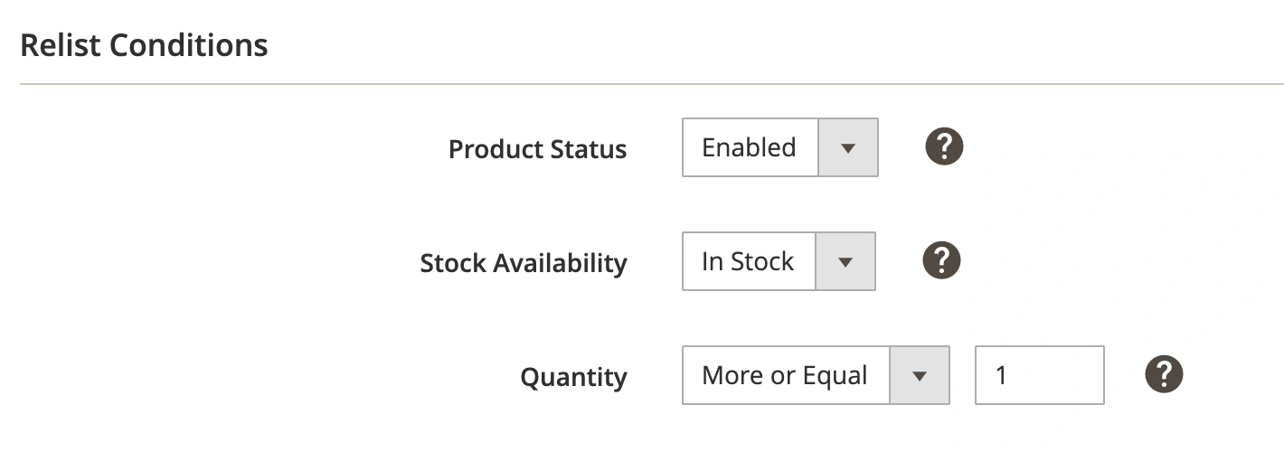 - Beliebig – Artikel können unabhängig von den Lagerbeständen in Magento erneut eingestellt werden.