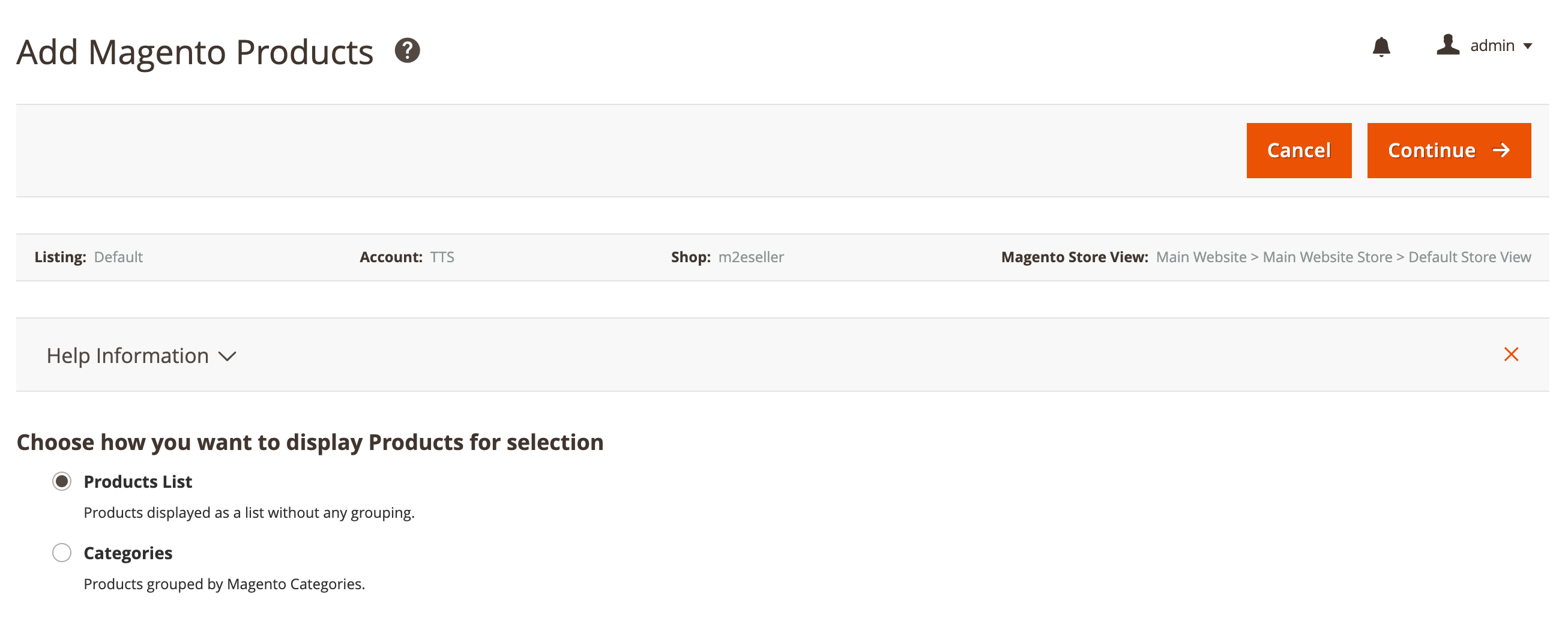 Once you have selected all the Products to be added, click Continue in the top right corner of the page.