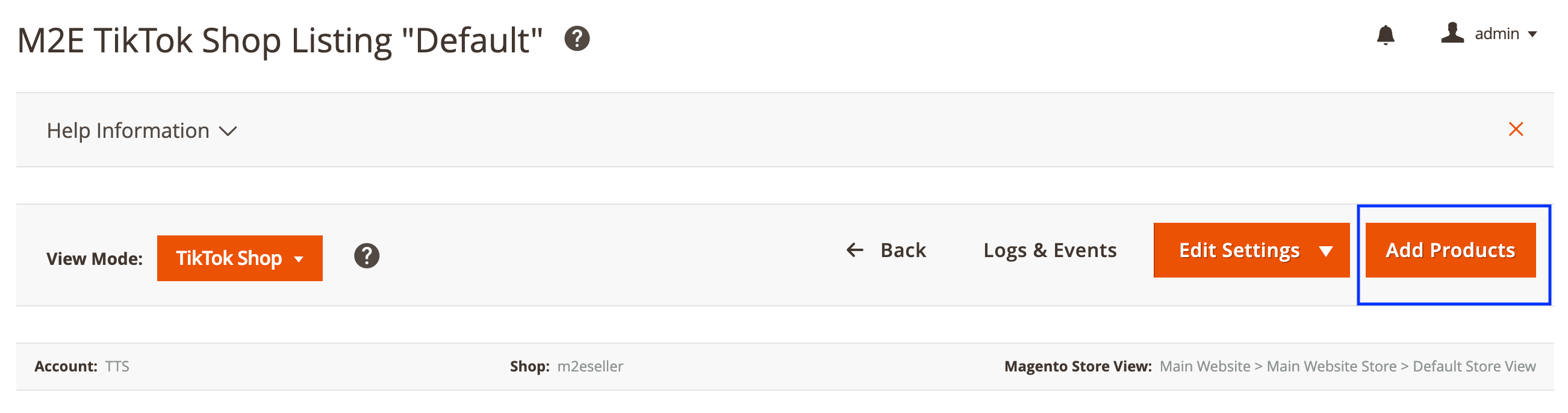 To list your inventory on TikTok Shop, you need to add Magento Products to M2E TikTok Shop (TTS) Listing. For that, click Add Products in the top right corner of your Listing page.