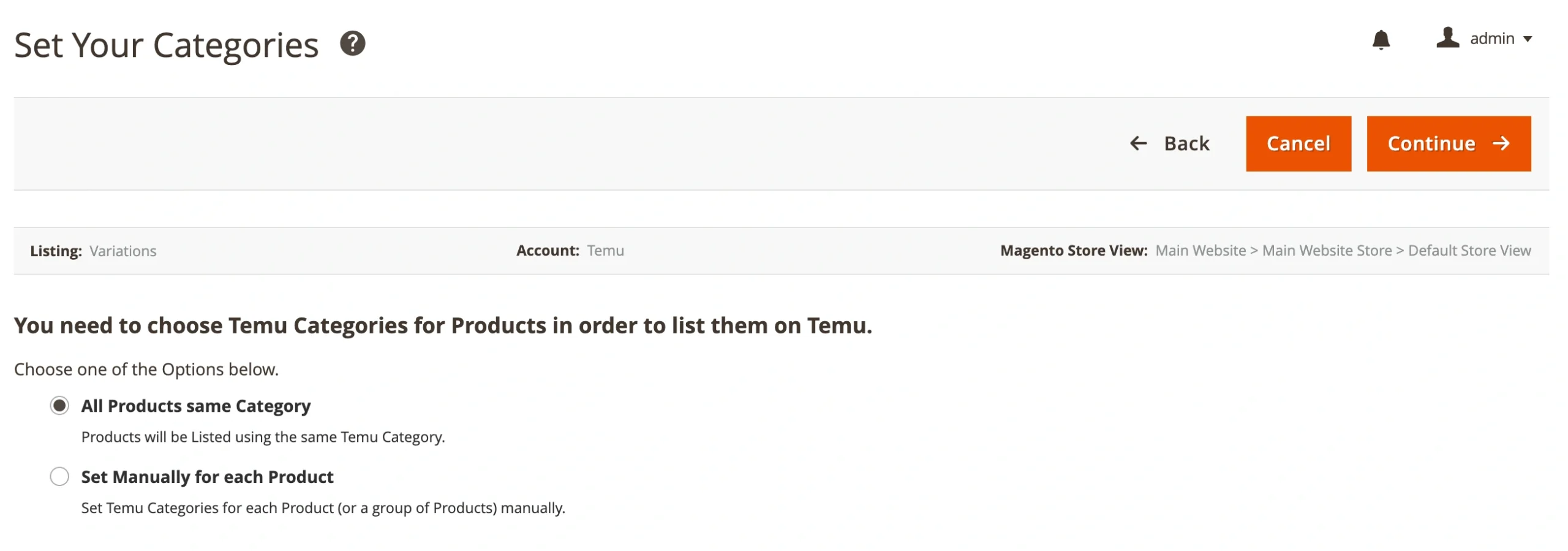 Assign a Temu Category to each product (or group of products) individually. Ideal for Listings that include items from different categories.