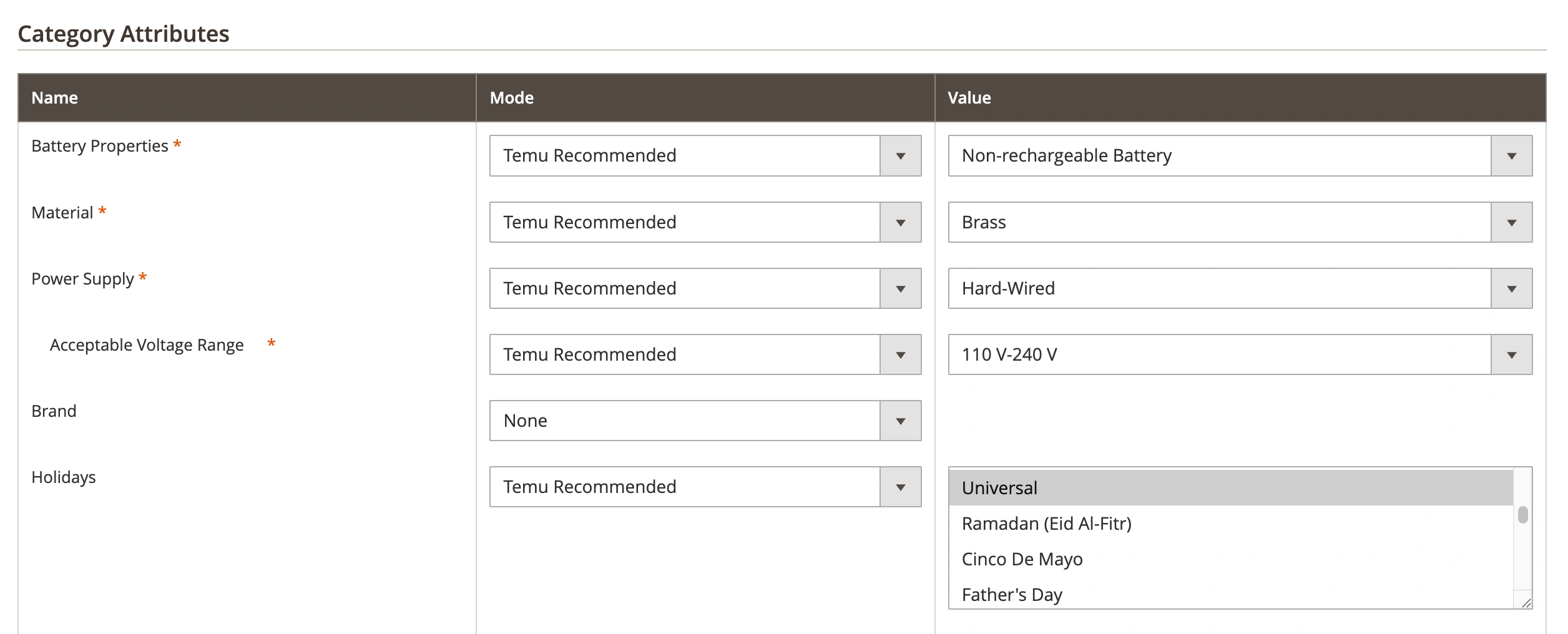 If you’ve selected Temu variation attributes that don’t match how your Magento product varies, M2E will instead use the variation attributes from your Magento product.