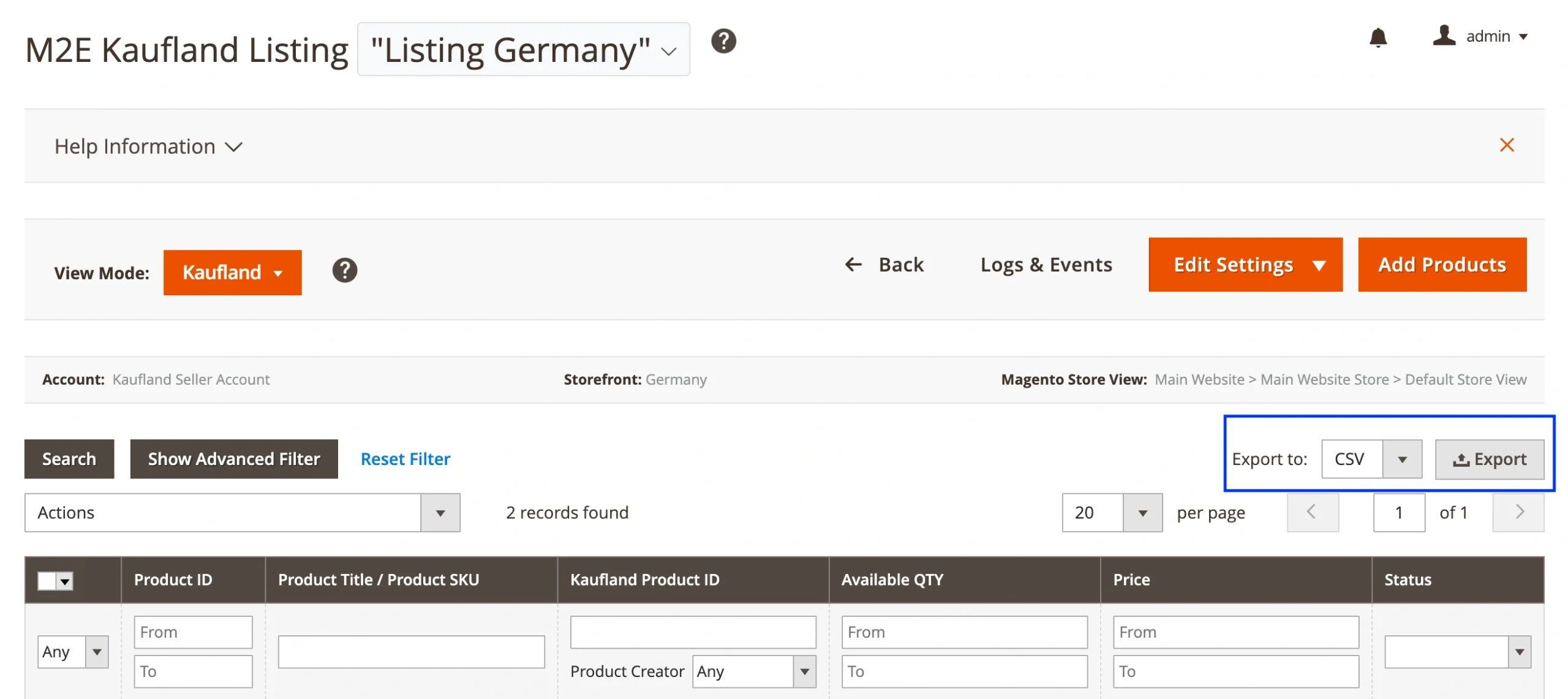 2. Export products from a specific Kaufland Listing
