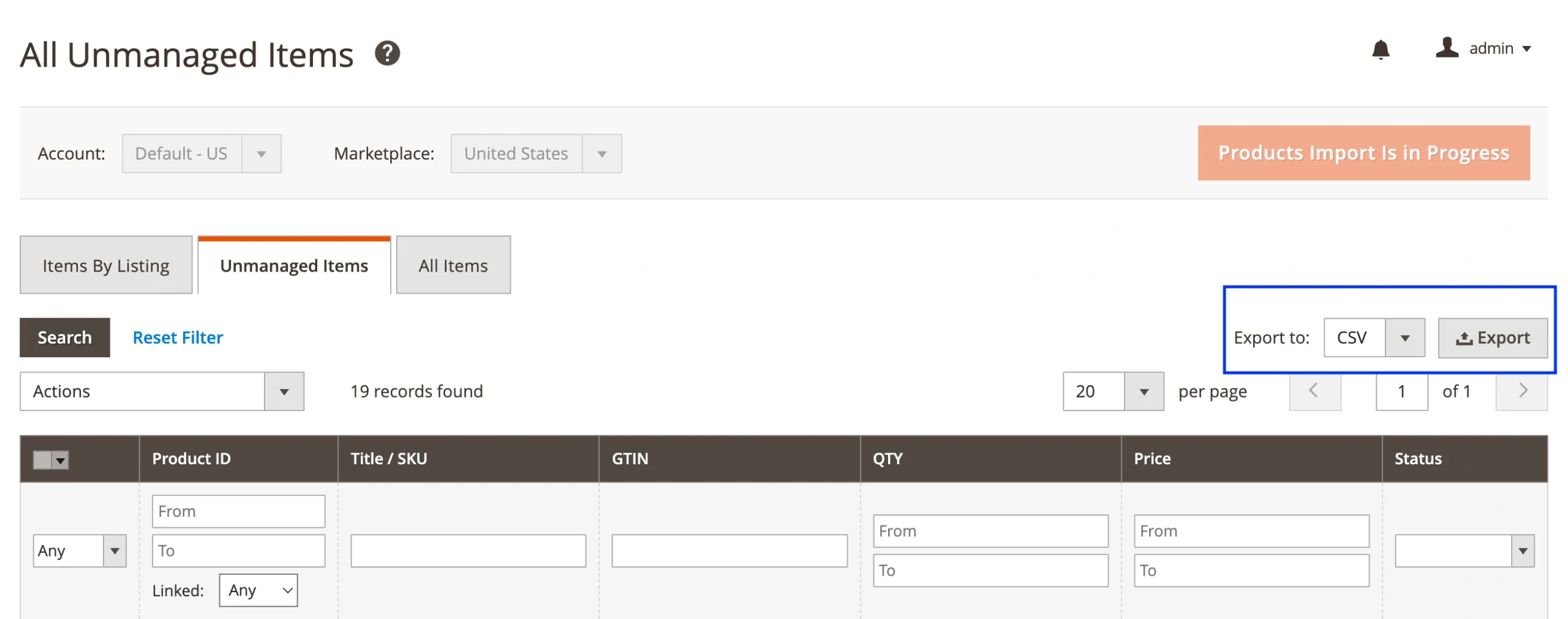 3. Export unmanaged Walmart listings