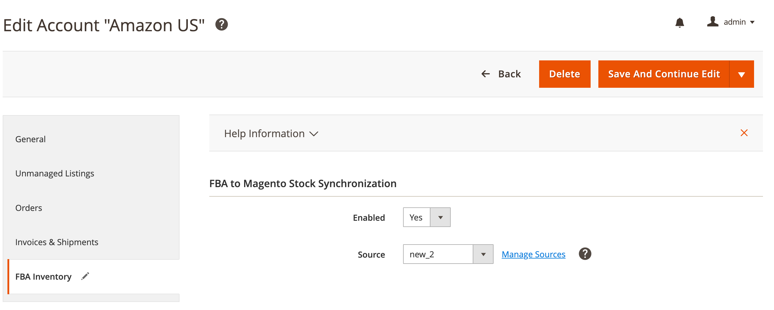 On this page, you can set up the automatic synchronization of Amazon FBA Product Quantity with your Magento Inventory Source.