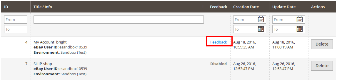 The list of the Feedback contains the main information about the Transaction ID along with the eBay item ID it is related to.