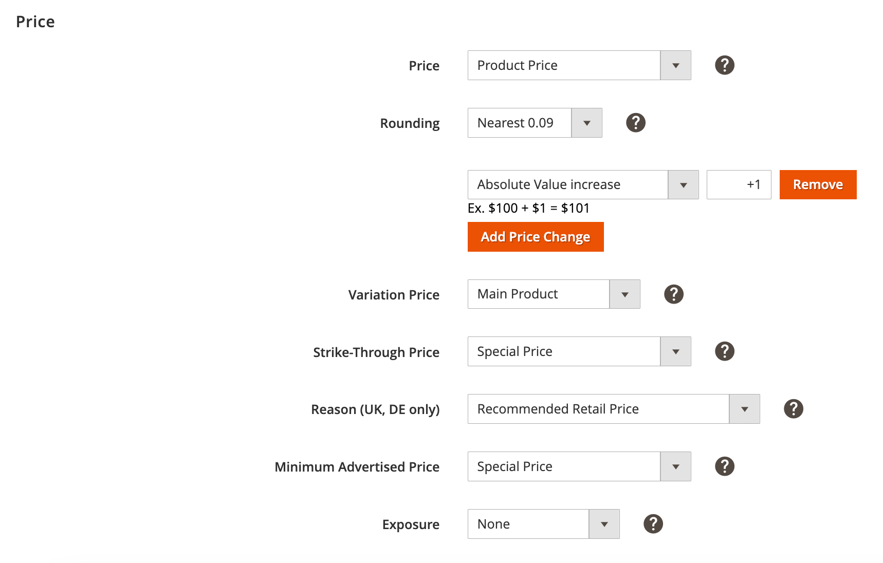 Price Change – adjust Magento Price value that will be submitted to Channel.