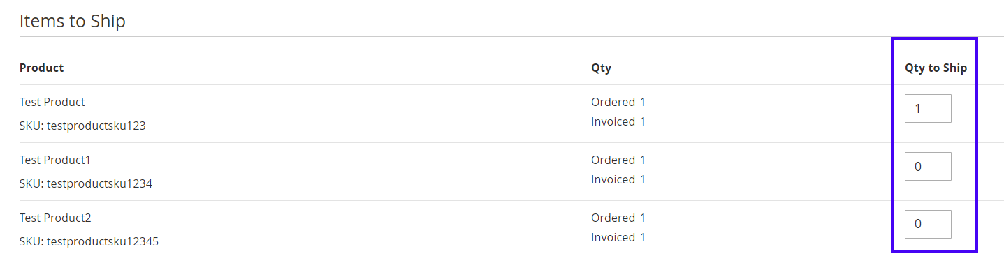 ✅ By default, the QTY to Ship is prefilled with the full order quantity. You can reduce this amount but not increase it.