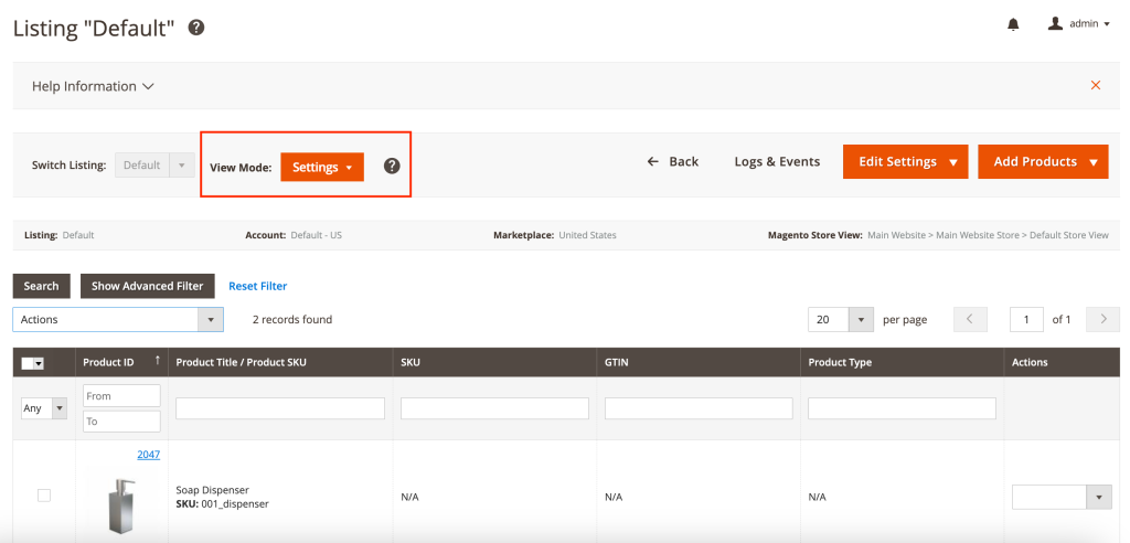 - Add more Magento Products to a Listing by clicking Add Products.