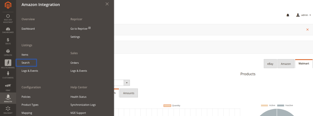 You can observe all Products added to M2E Pro Listings in Amazon Integration > Search or Amazon Integration > Listings > Items > All Items.