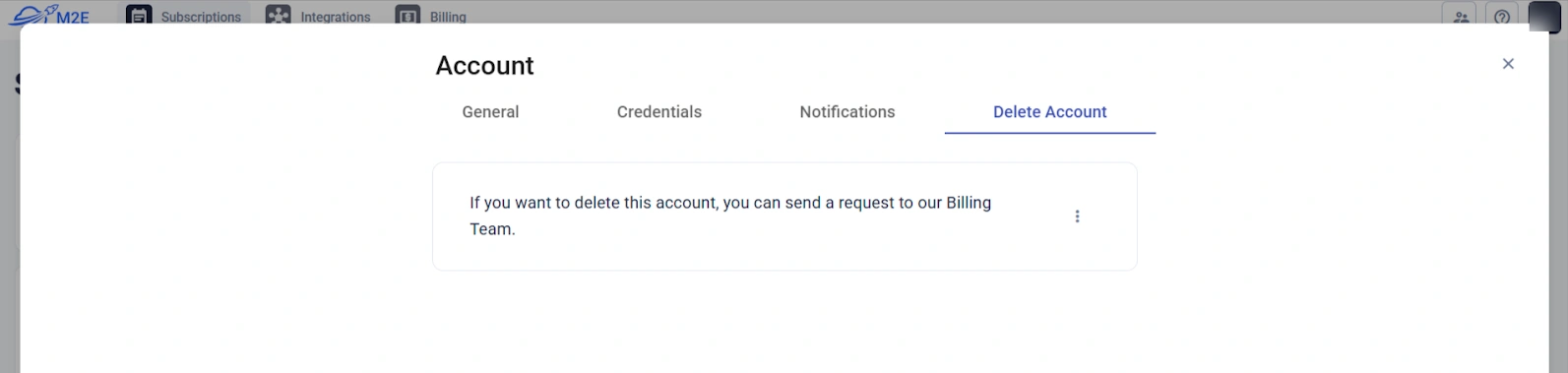 If you want to close your account and have your personal data removed, you’ll need to submit a request to our customer support team in M2E Accounts under the Account section: