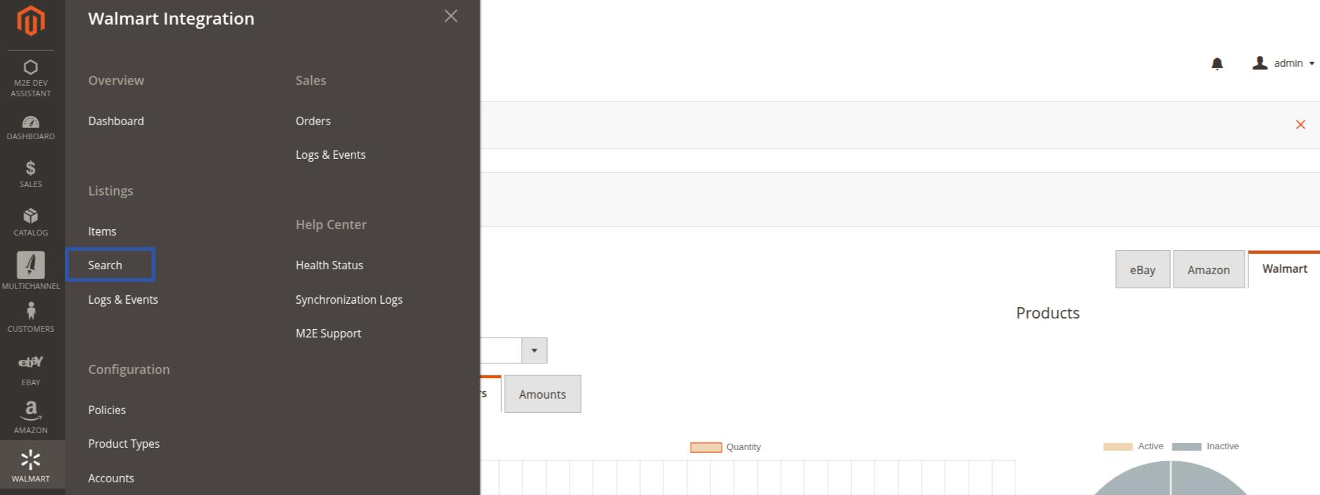 You can observe all Products added to M2E Pro Listings in Walmart Integration > Search or Walmart Integration > Listings > Items > All Items.