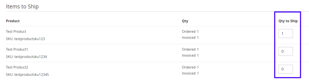 ✅ By default, the QTY to Ship is prefilled with the full order quantity. You can reduce this amount but not increase it.
