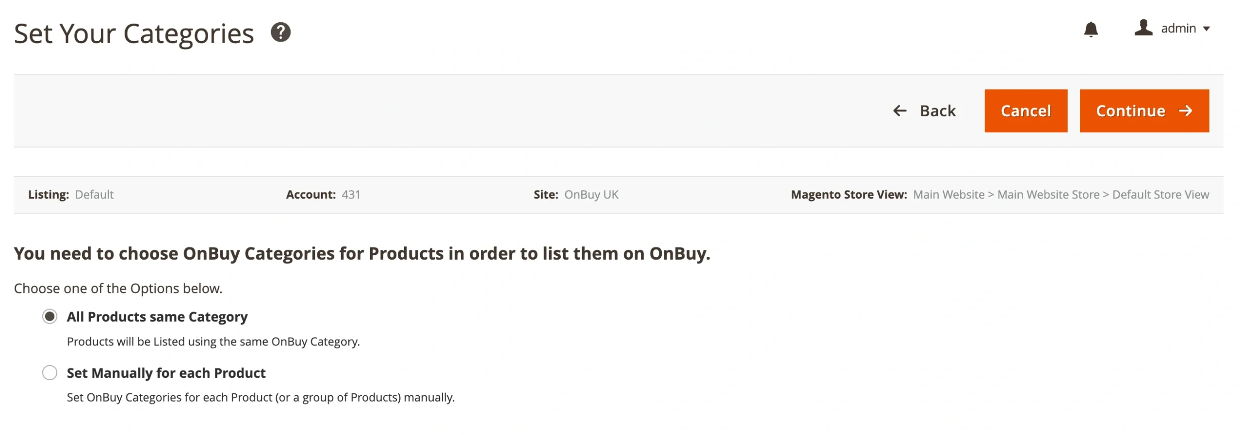 You have to set categories and attributes when adding your Magento products as new listings to the OnBuy catalog. Products without the category and related attributes can’t be listed on the OnBuy marketplace as new items.