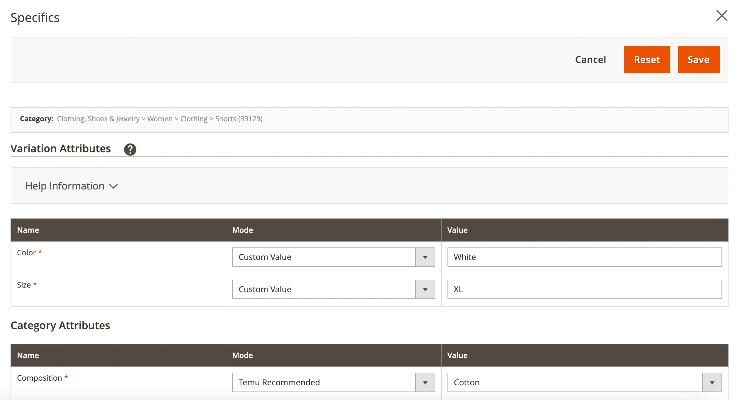 ⚠️ Any changes made to category data will be automatically applied to all Temu products using that category.