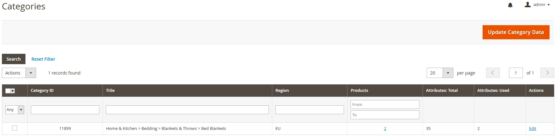 At any time, you can modify category and attribute settings for your Temu products. All assigned categories are located under Configuration > Categories.