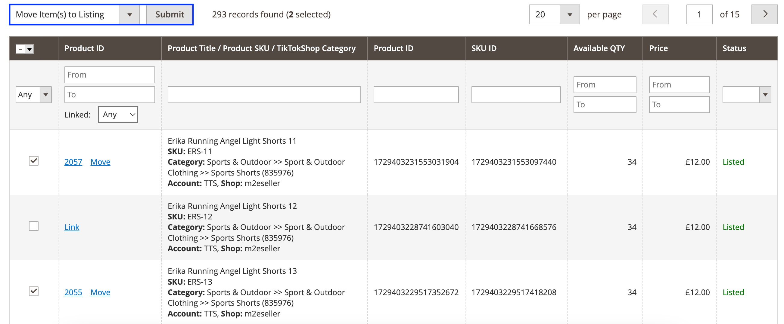 - Move Item(s) to Listing - allows moving selected linked Items to M2E TTS Listing.