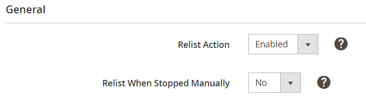 Puede establecer las Condiciones por las que M2E Pro debe volver a listar automáticamente los Artículos en eBay. Estas Reglas pueden aplicarse a los Productos que están Parados o Finalizados en eBay para que vuelvan a estar activos.