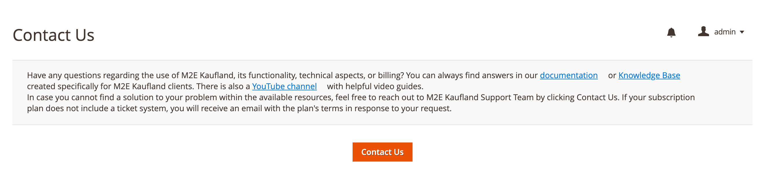 - En cada página de extensión (predeterminado): se mostrará un bloque de notificación en cada página de M2E Kaufland Connect.