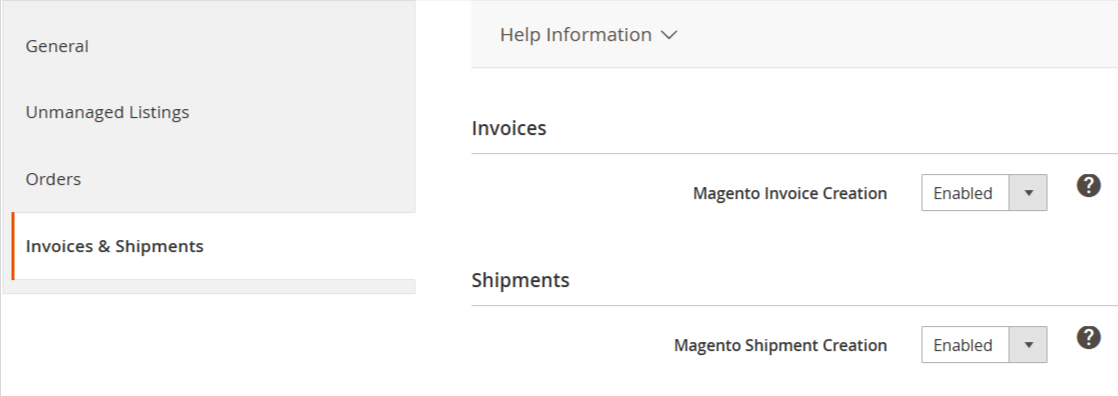 - Creación de factura de Magento - active esta opción para crear automáticamente una factura para el Pedido de Magento cuando el estado del Pedido sea Sin enviar.