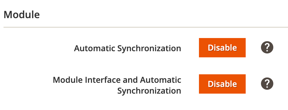 Synchronisation automatique – si vous désactivez cette option, la synchronisation de l'inventaire et des commandes s'arrête. L'interface du module reste disponible.