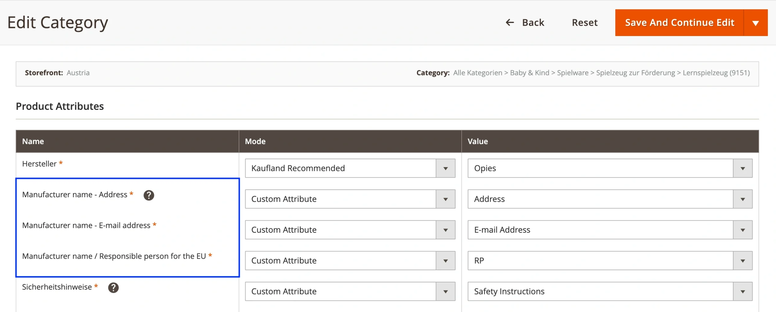 Dans M2E Connect, ces attributs sont déjà requis dans vos paramètres de catégorie. Nous vous recommandons de les revérifier maintenant afin d'éviter d'éventuelles interruptions d'annonces une fois que Kaufland aura mis en œuvre le changement.