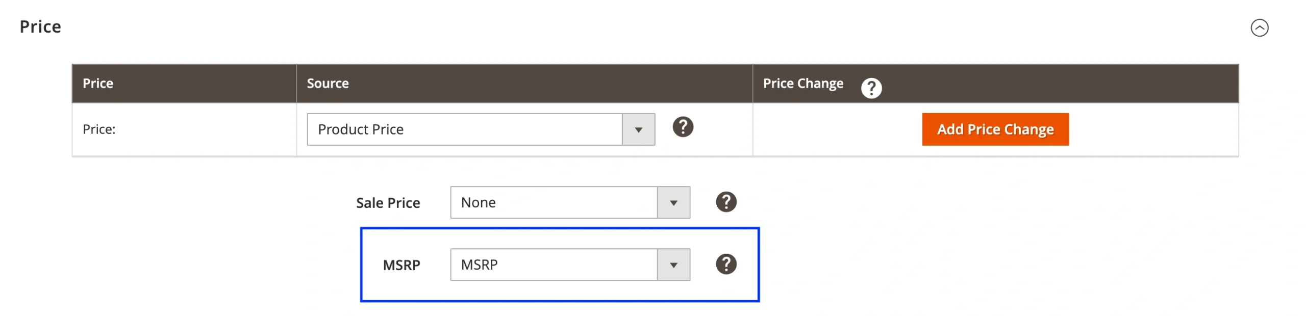 Pour activer cette option, sélectionnez un attribut Magento qui contient la valeur MSRP.