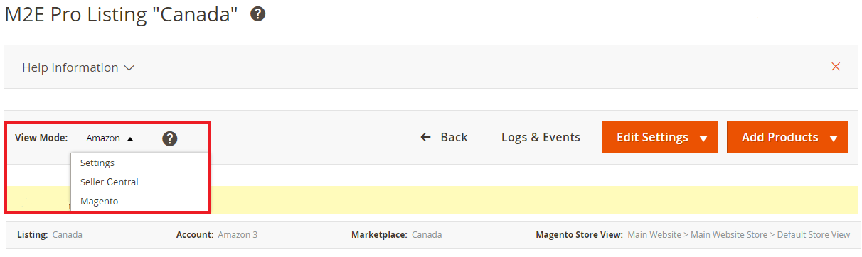 Les annonces M2E Pro proposent quatre modes de visualisation des annonces Amazon. Il s'agit du mode d'affichage Amazon, du mode d'affichage Setting, du mode d'affichage Seller Central et du mode d'affichage Magento. Ces modes vous permettent de visualiser et de gérer les données du produit à partir de différentes perspectives.