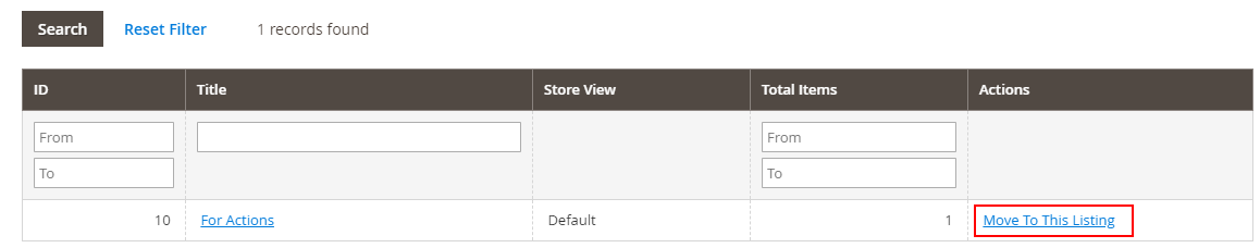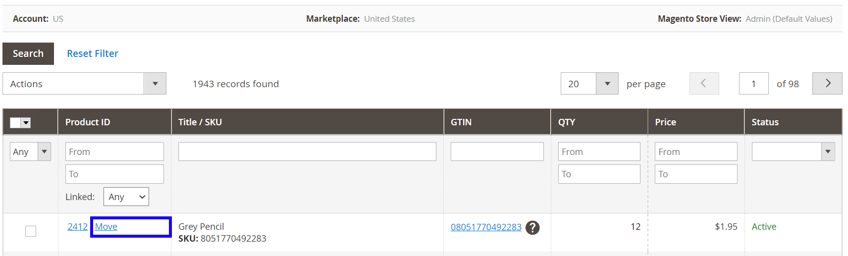 Une fois l'objet non géré lié, il peut être déplacé vers l'annonce M2E Pro. Pour ce faire, veuillez cliquer sur Déplacer à côté de l'objet :