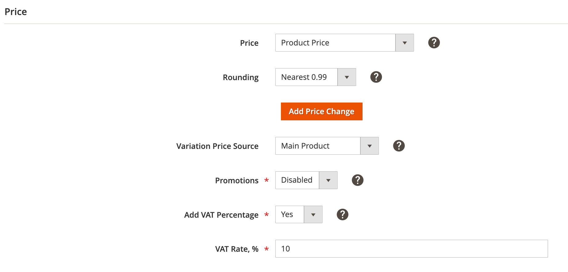 Par exemple, si le prix du produit Magento = 10 £ et le taux de TVA = 15 %, c'est-à-dire 10 £ * 15 % = 1,50 £, le prix final de l'objet sur Walmart sera calculé comme le prix Magento + TVA, c'est-à-dire 10 £ + 1,50 £ = 11,50 £.