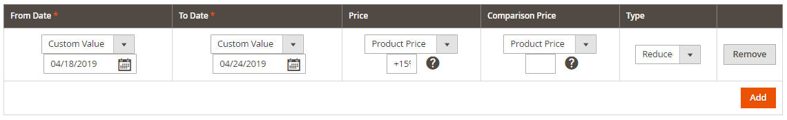Cliquez sur Ajouter des promotions pour compléter les détails de la promotion, c'est-à-dire les dates de début et de fin, les prix promotionnels et de comparaison, le type de promotion. Vous pouvez spécifier jusqu'à 10 promotions pour un produit en cliquant sur Ajouter.