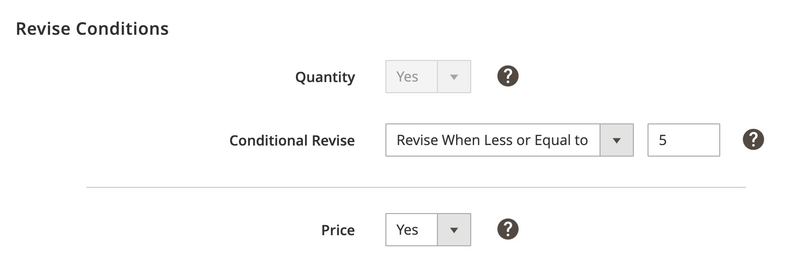 ℹ️ Se si sincronizza l'inventario di Magento con le scorte dei fornitori, che vengono spesso modificate, l'abilitazione del Revidere condizionale è di fondamentale importanza.