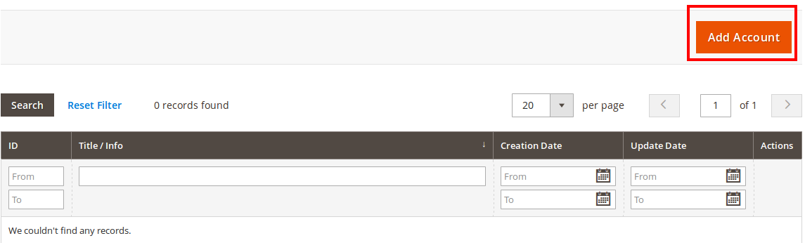 Jeśli chcesz podłączyć inne konto, przejdź do Amazon Integration > Configuration > Accounts i kliknij przycisk Dodaj konto.