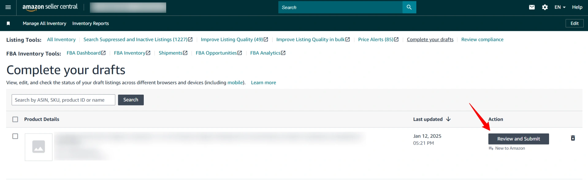 ✅ Czasami Amazon może zablokować produkty bez wyraźnego powodu. W takim przypadku ręczne Przejrzyj w M2E Pro może spowodować aktywację produktu na Seller Central.