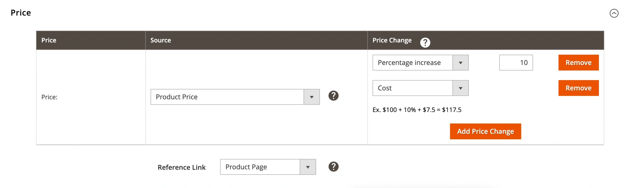 - Zmniejszenie wartości bezwzględnej - zmniejsza cenę pozycji Temu w porównaniu z odpowiednią ceną produktu Magento o określoną liczbę jednostek.