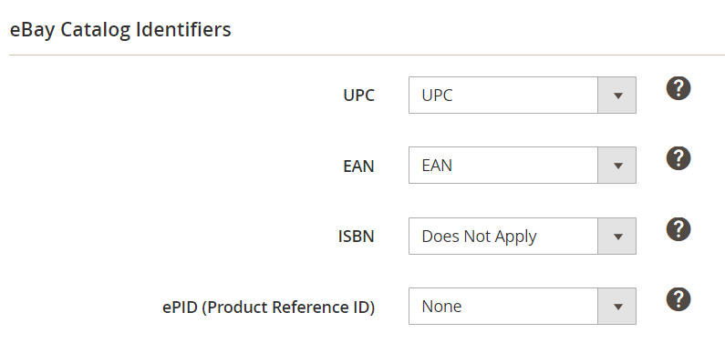 O eBay exige o fornecimento de IDs de catálogo para produtos simples e variacionais em determinadas categorias. Se for esse o caso e seus produtos não tiverem código UPC/EAN/ISBN/ePID, forneça-o como um valor “Não se aplica” selecionando a opção correspondente no menu suspenso.