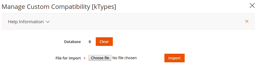 Se você não encontrar os veículos compatíveis necessários na lista de Parts Compatibility baseada nos dados do eBay, poderá importar um banco de dados ePID/kType personalizado. Para isso, clique em Gerenciar na linha “Banco de dados”. Uma janela pop-up aparecerá, na qual você deverá escolher um arquivo CSV preparado e clicar em Importar.