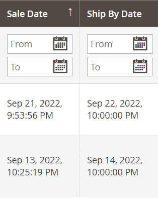 You can also filter and sort Walmart Orders by the Sale Date or Ship by Date values, specifying From and To dates: